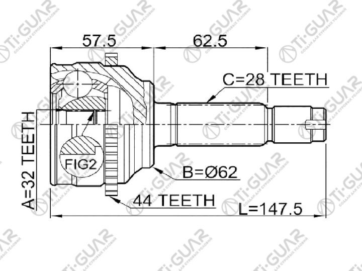 ШРУС наружный /передний правый /левый /TI-GUAR для Mazda 6 Atenza 2002- GGEP/GGES 2.0L LF-DE GG3P/GG3S 2.3L L3-VE; 32*62*28; TG-6844Z44; (MA044A44) GF092560XA 0510044A44